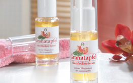 Für die Gesichtscreme haben wir unter anderem Granatapfelsamenöl verwendet und natürlich unseren Bio-Granatapfelsaft der reich an natürlichen Antioxidantien ist.